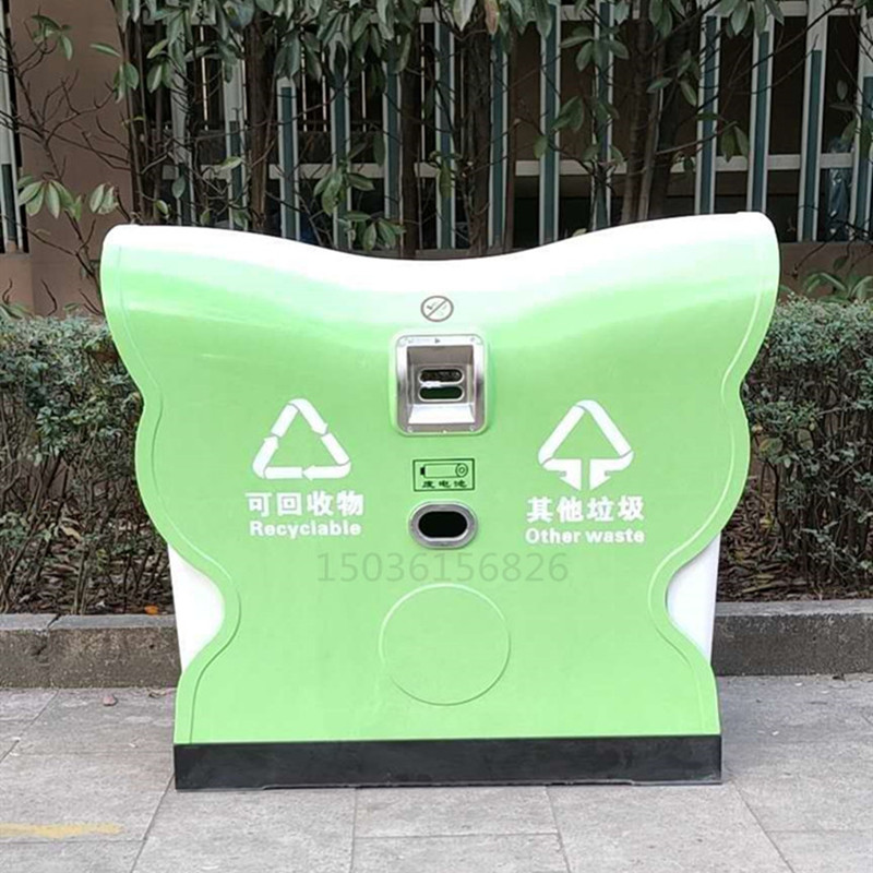 新款模壓耐高溫蝴蝶式垃圾桶果皮箱,由頂蓋、側板、底座、支架、內(nèi)膽、煙蒂收集盒、廢電池回收盒等附配件組成。